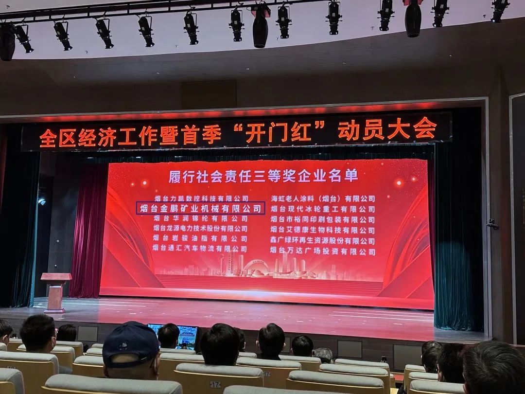 1月29日上午,煙臺黃渤海新區(qū)全區(qū)經(jīng)濟工作暨首季“開門紅”動員大會在美麗的八角灣會展中心隆重舉行。會上,金鵬礦機被評為“履行社會責任三等獎企業(yè)”,許慶硯總經(jīng)理獲頒“2022年度履行社會責任優(yōu)秀企業(yè)家”榮譽稱號。
