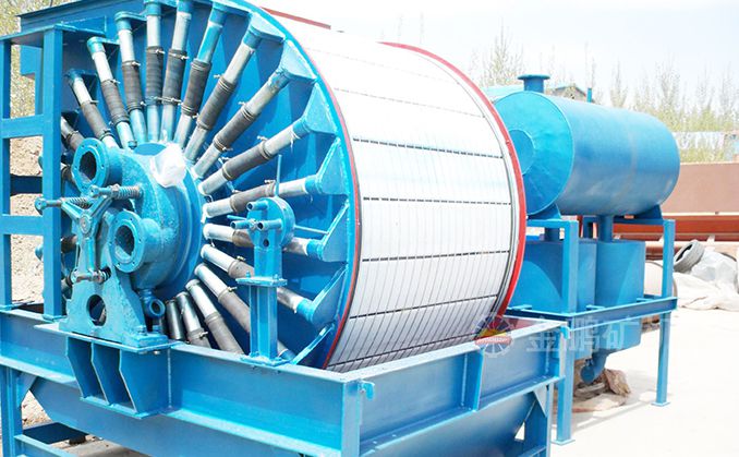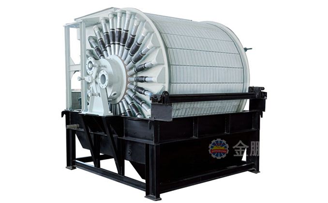 磁濾機(jī)的給料槽在上部,由于上部給料,濾餅又在磁場中形成,所以濾餅中精礦按粒度分層現(xiàn)象明顯,并呈放射狀分布。濾餅不但厚而且透氣性好,易于脫水。