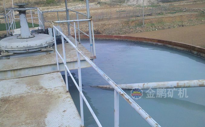 濃縮機(jī)主要由圓形濃縮池和耙式刮泥機(jī)兩大部分組成,濃縮池里懸浮于礦漿中的固體顆粒在重力作用下沉降,上部則成為澄清水,使固液得以分離。沉積于濃縮池底部的礦泥由耙式刮泥機(jī)連續(xù)的刮集到池底中心排礦口排出,而澄清水則由濃縮池上沿溢出。