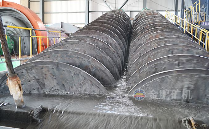 6.單螺旋高堰式分級機(jī)返砂端增加了一個返砂自動提升裝置,返砂自動流進(jìn)球磨機(jī)進(jìn)料口,球磨機(jī)給料器取消大勺頭的配置,因而減緩了對大、小齒輪的不均衡沖擊,并且每噸礦石一般可節(jié)電1-1.5度、避免了大勺頭的頻繁檢修。